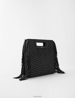 Maje حقيبة جلد مبطنة M ملحق أسود نحيف JP08B483