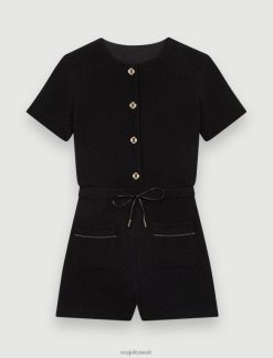 Maje بدلة تويد ملابس أسود نحيف JP08B141