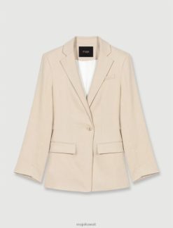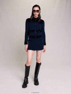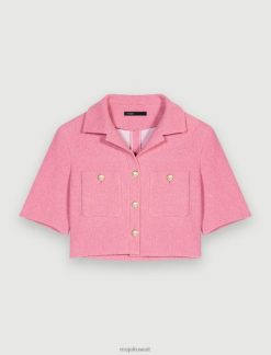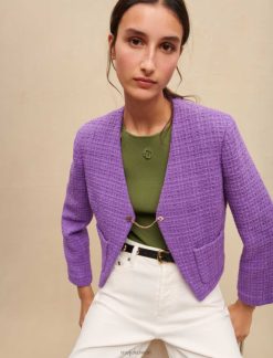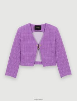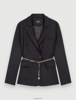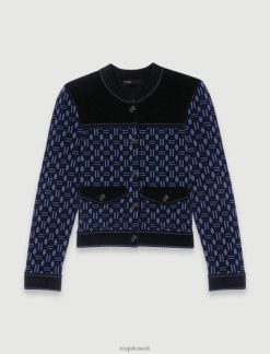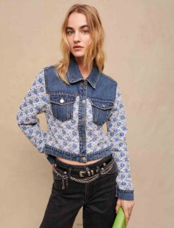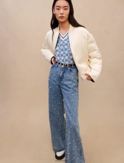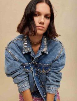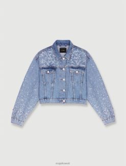 Maje سترة الدنيم مع أحجار الراين ملابس أزرق فاتح نحيف JP08B328
