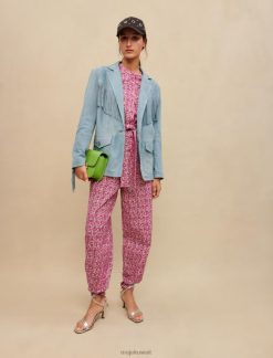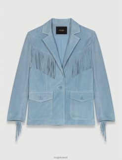 Maje معطف فرو صناعي ذو وجهين ملابس القوات البحرية نحيف JP08B37