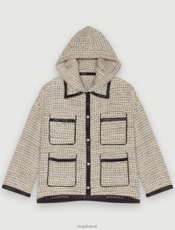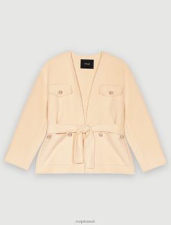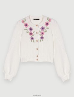 Maje كارديجان قصير مطرز بالزهور ملابس بيج فاتح نحيف JP08B325