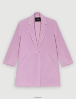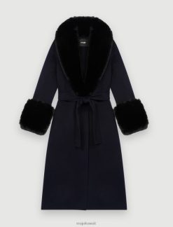 Maje معطف فرو صناعي ذو وجهين ملابس القوات البحرية نحيف JP08B37