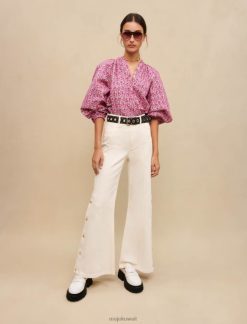 Maje بنطال واسع بأزرار على الجوانب ملابس بيج فاتح نحيف JP08B319