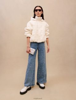 Maje شورت جينز مطرز ملابس أبيض نحيف JP08B241