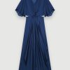 Maje فستان طويل مطبوع ملابس مجردة زرقاء نحيف JP08B172