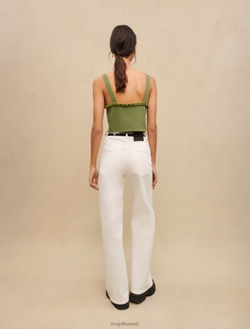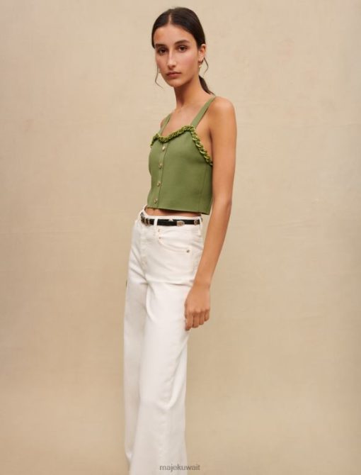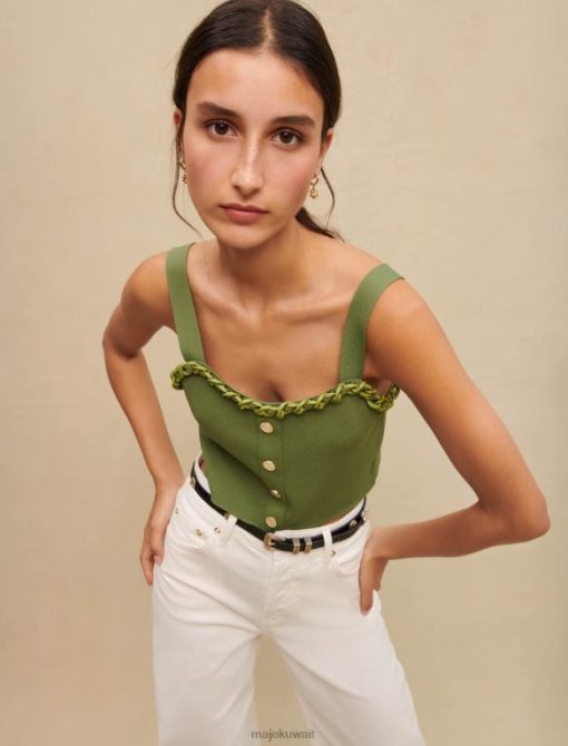 يتميز هذا القميص القصير المزخرف بسلاسل مطاطية متشابكة غير لامعة بأزرار متقنة ويمكن ارتداؤه تحت سترة أو سترة مطابقة.