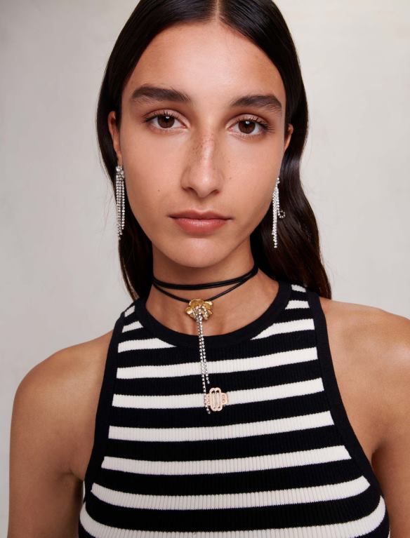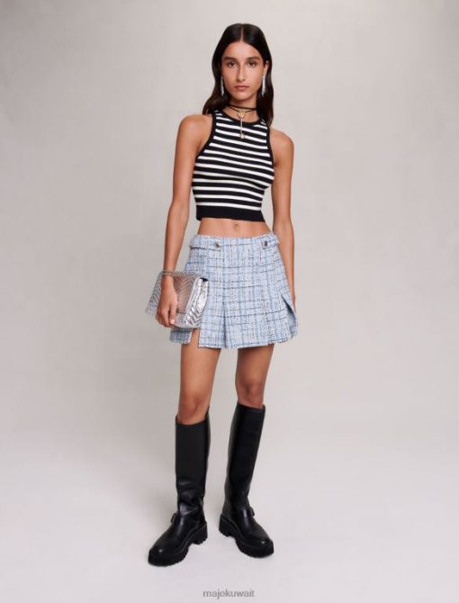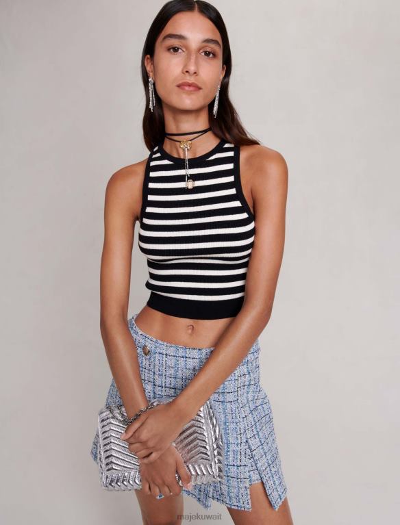 في هذا الموسم، تستمد maje إلهامها من العالم الحضري، وتعيد النظر بجرأة في قطع خزانة الملابس الخالدة لإضفاء لمسة جديدة على ملابسك اليومية. هناك تفاعل بين الخطوط على هذا القميص القصير المضلع لتوفير الراحة والأناقة. إنه بلا أكمام ويتميز برقبة مستديرة وظهر متسابق وزخرفة متباينة. وما الذي يجعلها أنيقة جدًا؟ يتميز ببرسيم ذهبي مميز على الجهة الأمامية لإضفاء مظهر حقيقي على صورتك الظلية.