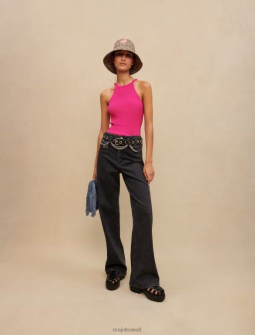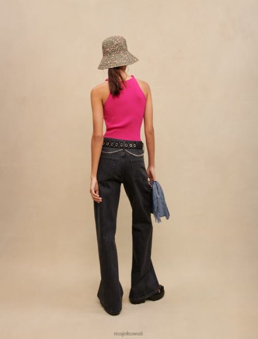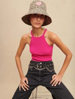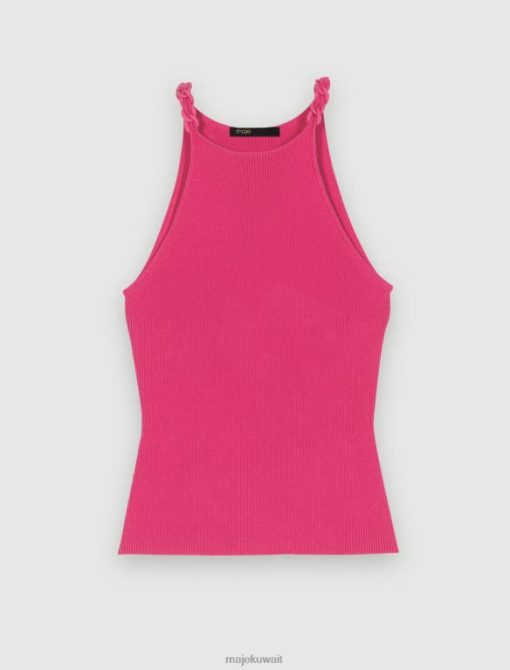 لون وردي نابض بالحياة ومتألق لإضفاء البهجة على مظهرك. تم تزيين هذا الجزء العلوي من الرقبة بأشرطة ربط متناغمة ويكشف الأكتاف بدقة.