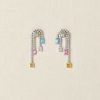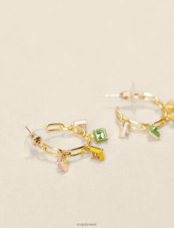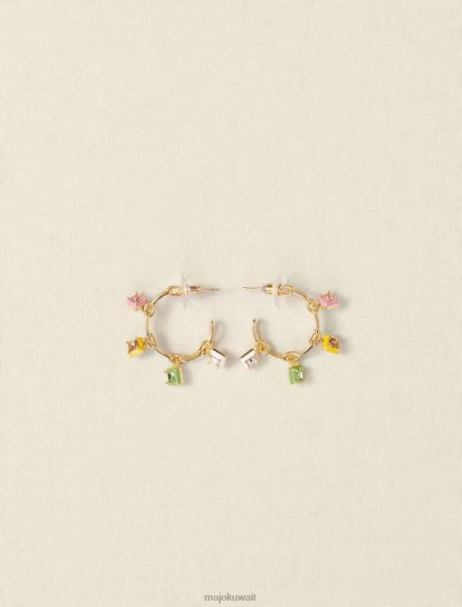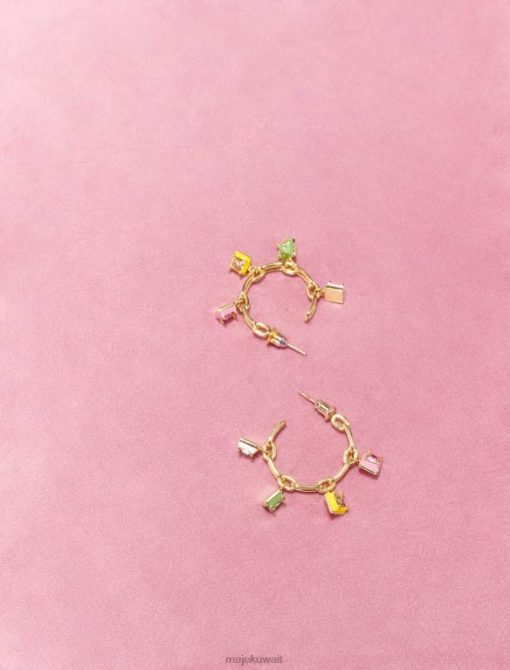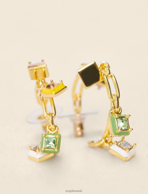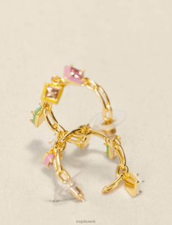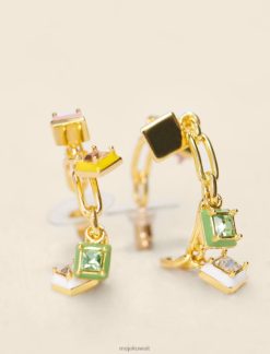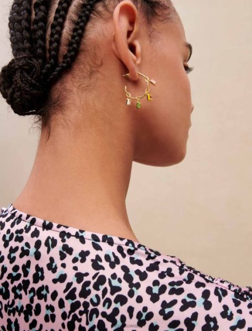 تم تزيين هذه الأطواق المصنوعة من النحاس المعاد تدويره باللون الذهبي بأربعة دلايات من المينا الملونة والأحجار الرقيقة. هذه الأقراط الصيفية مثالية لهذا الموسم.