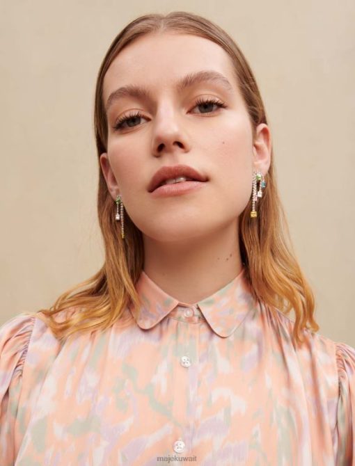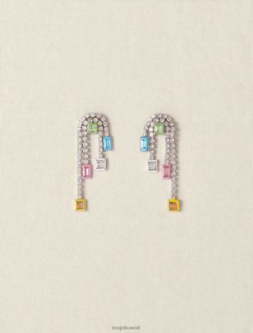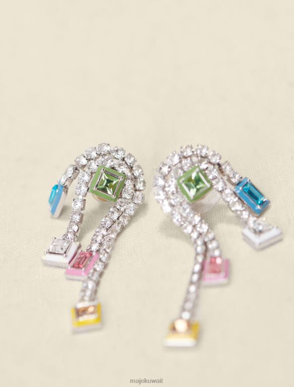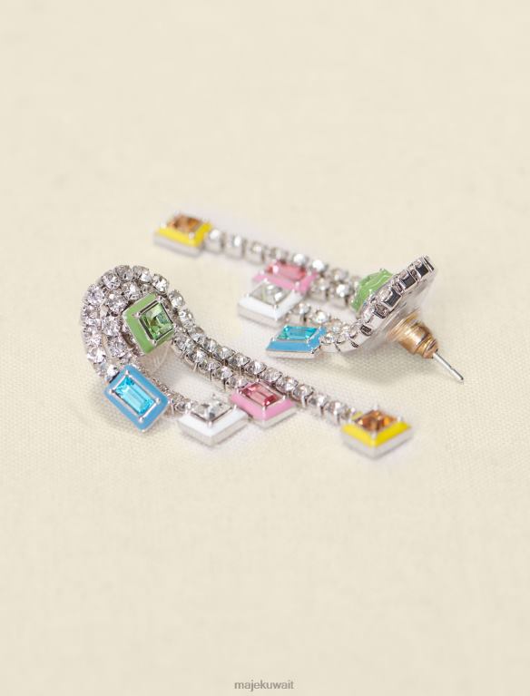 هذه الأقراط النحاسية ذات اللون الفضي مزينة بأحجار الراين بأحجام مختلفة، بالإضافة إلى 4 دلايات من المينا الملونة مع أحجار رقيقة. هذه الأقراط الملونة واللامعة مثالية للمناسبات الخاصة.