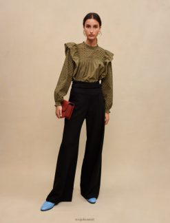 Maje سراويل واسعة عالية الخصر ملابس القوات البحرية نحيف JP08B118