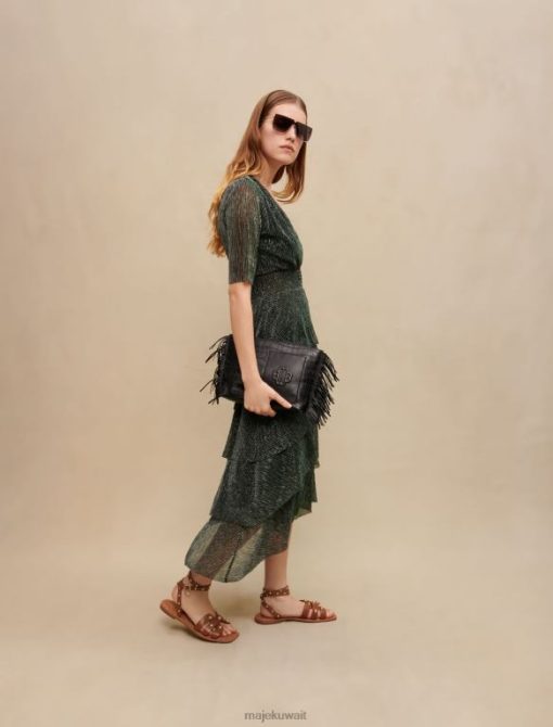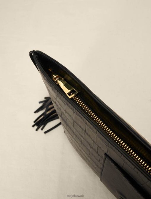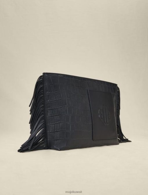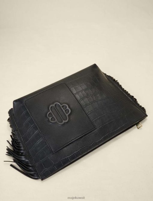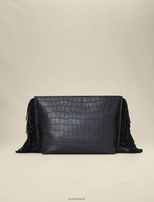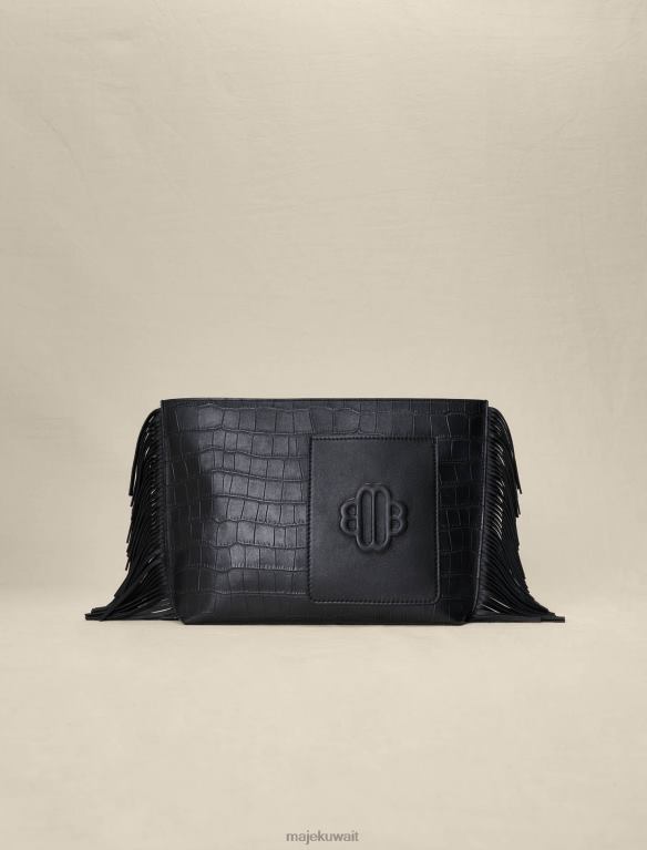 Maje الحقيبة مهدب في الجلد المنقوش ملحق أسود نحيف JP08B476