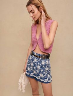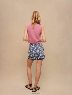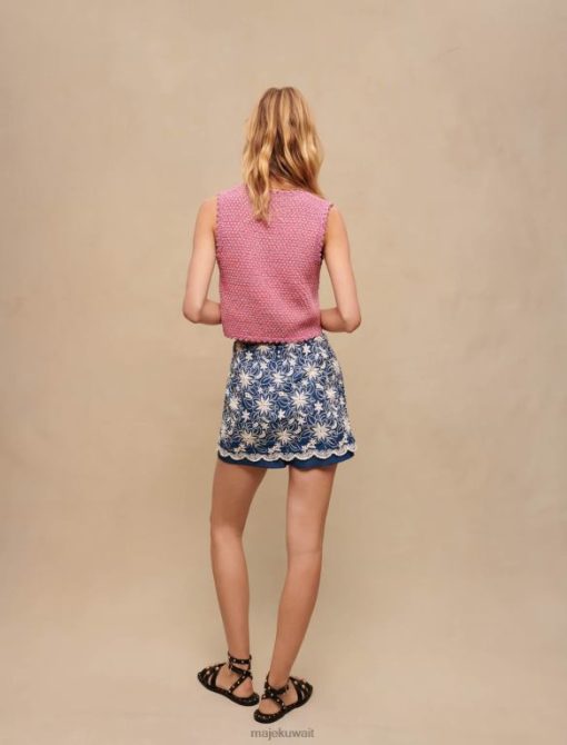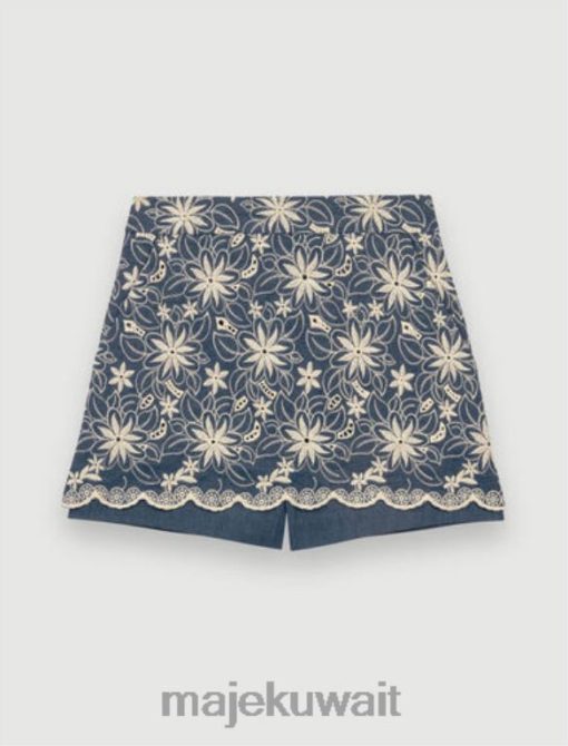 Maje السراويل الأزهار المطرزة ملابس أزرق نحيف JP08B314
