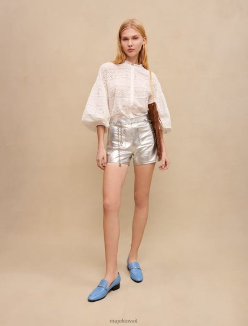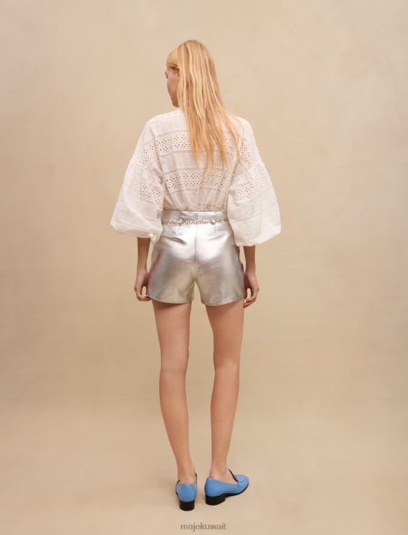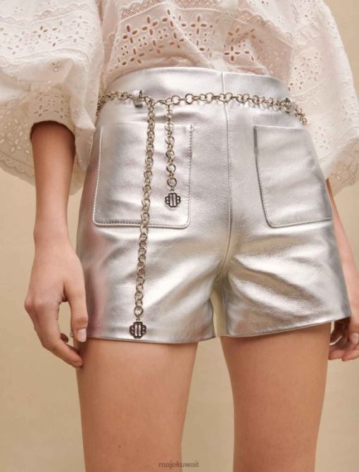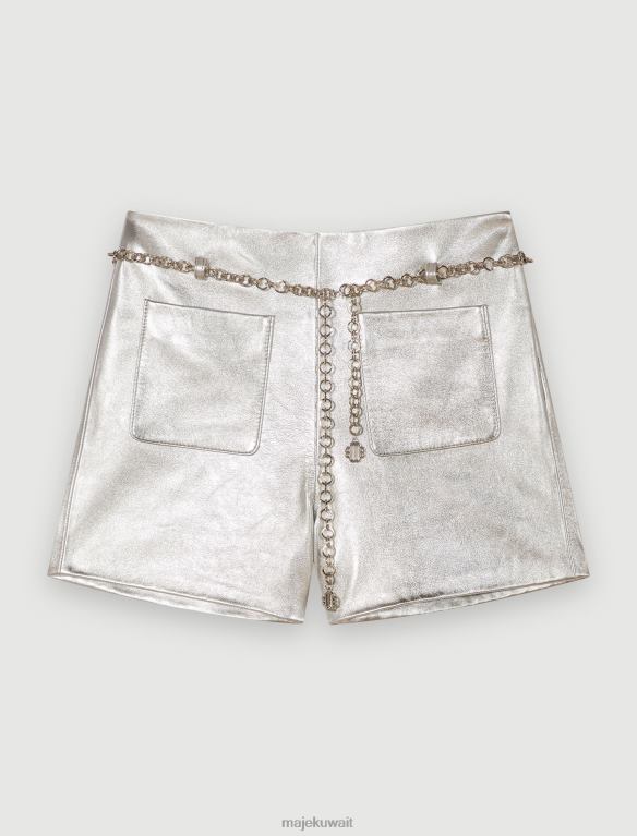 يعد هذا الشورت المصنوع من الجلد المعدني قطعة عصرية وعصرية. تم تصميم قصتها المستقيمة لإضفاء لمسة جمالية على شخصيتك. تتميز بجيبين أماميين وحزام سلسلة رفيع من البرسيم.