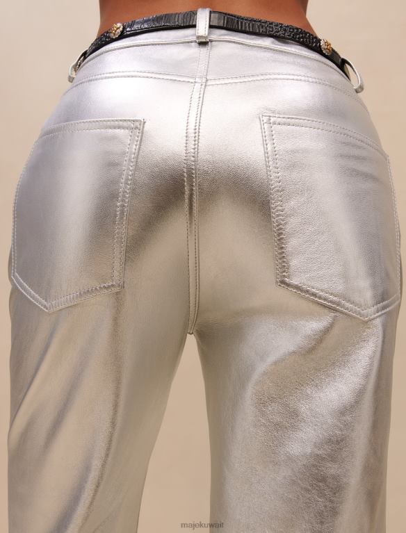 Maje السراويل الجلدية ملابس فضة نحيف JP08B395