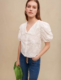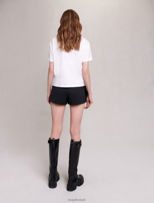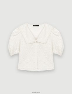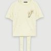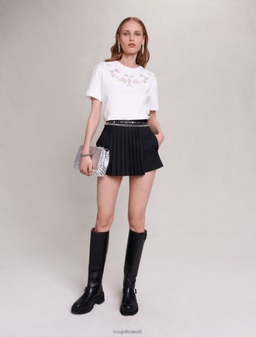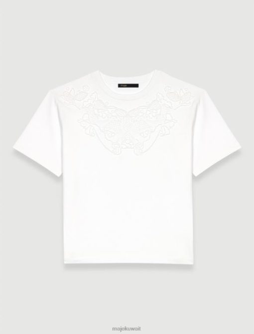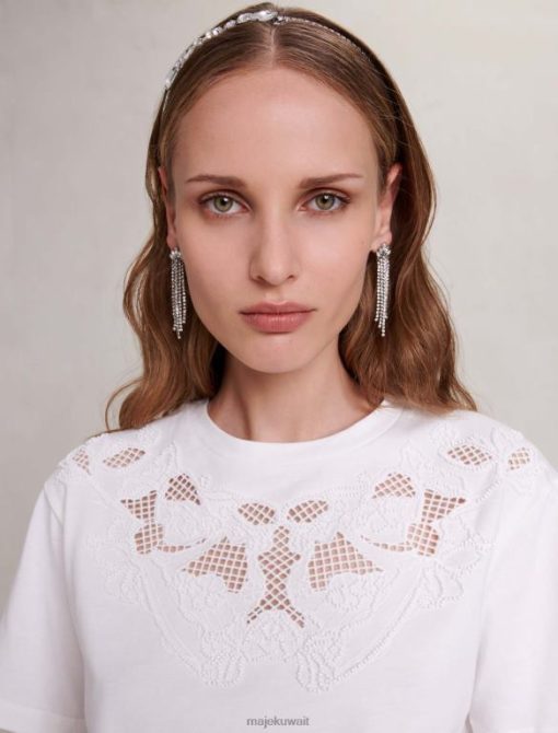 يتميز هذا التي شيرت القطني برقبة دائرية وأكمام قصيرة، وجزء أمامي من الدانتيل المطرز بالكامل ومزين بالخرز المتناغم.