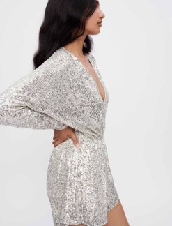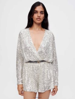 Maje بدلة لعب مطرزة ملابس فضة نحيف JP08B140