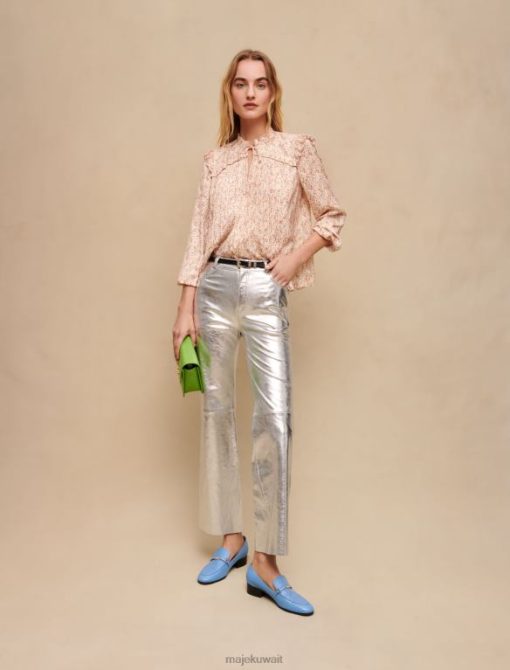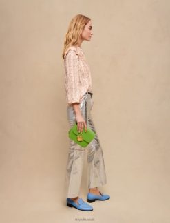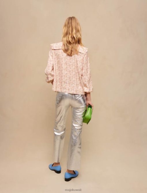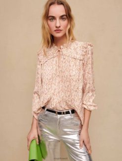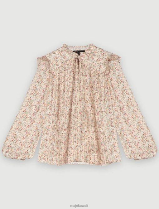 Maje بلوزة تكدرت ملابس إكرو/فوشيا زهرة صغيرة نحيف JP08B423