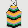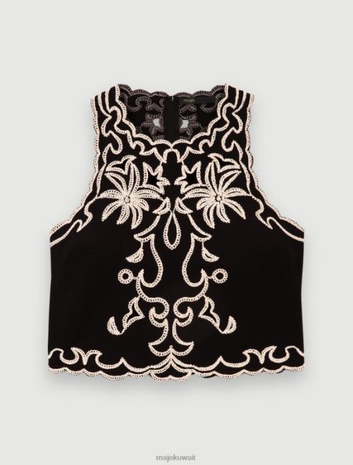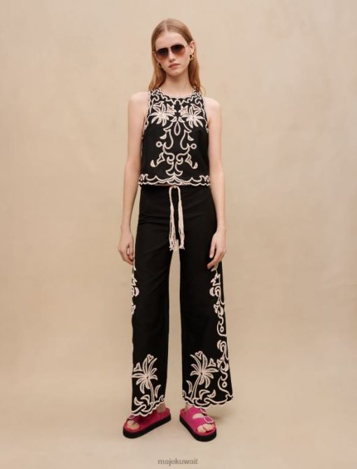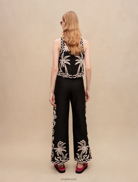 سينقلك ماجي هذا الموسم إلى ميامي. شجرة النخيل هي ضيفة الشرف في هذه المجموعة الغريبة وتظهر على شكل تطريز متباين على القطع الرئيسية لهذا الموسم. تتميز هذه السترة المصنوعة من المكرمية المطرزة مباشرة على القطن بتطريز شجرة النخيل المتباين. مع حواف صدفية ومزينة بتطريز شامل يكشف عن لوحات مخرمة، فهو يضفي الخفة على مظهرك الصيفي. يتميز هذا الطراز بدون أكمام بياقة دائرية وقصة قصيرة واسعة قليلاً. ارتديه مع البنطال المطابق.