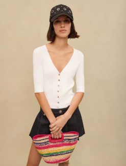 هذا القميص الأبيض هو الطراز الخالد الذي تحتاجه في خزانة ملابسك. يحتضن الجسم مع خط رقبة على شكل حرف V وأكمام بطول 3/4، ومرتفع بأزرار البرسيم الرائعة في الأمام. مثالي ليوم في المكتب.