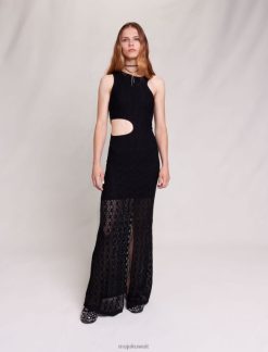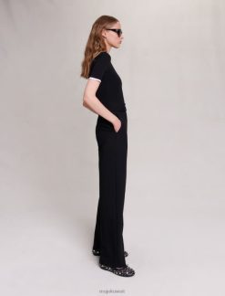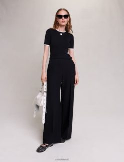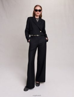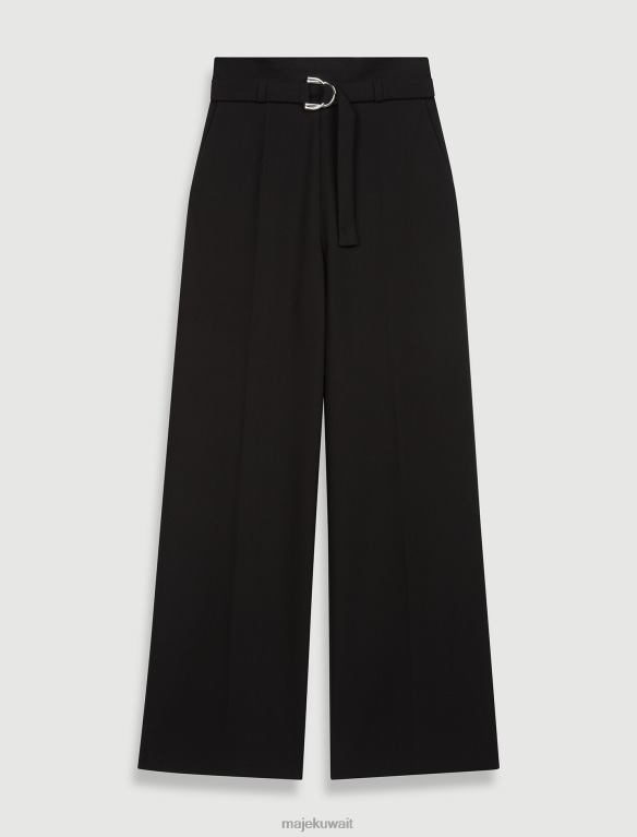 Maje بنطال واسع الساق مع حزام ملابس أسود نحيف JP08B117