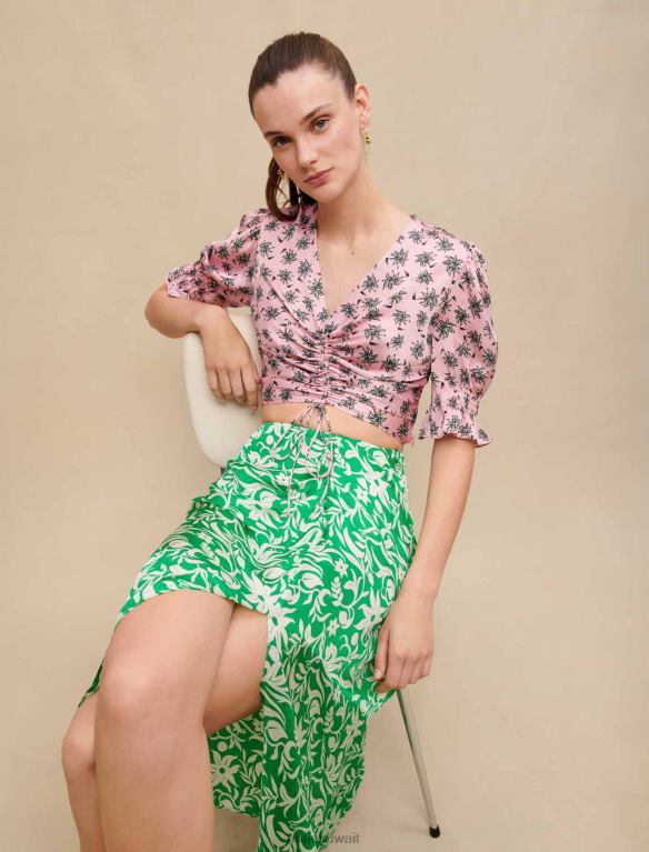 تُظهر هذه التنورة غير المتماثلة من الساتان طبعة شعرية حالمة. تشكل الستارة الرقيقة فتحة ومظهر أنيق وخفيف الوزن. قم بإقرانه مع القميص المطابق لإنشاء مجموعة.