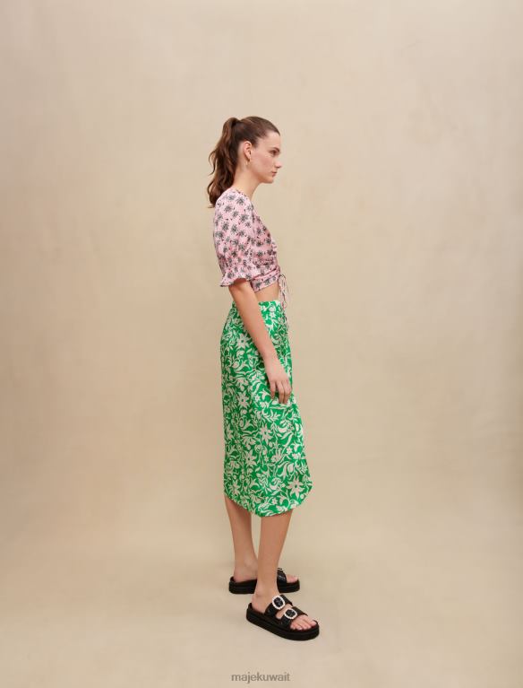 Maje تنورة زهرية طويلة ملابس طباعة زهرة الربيع المتعددة نحيف JP08B69