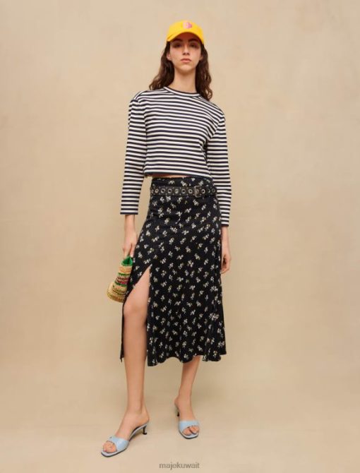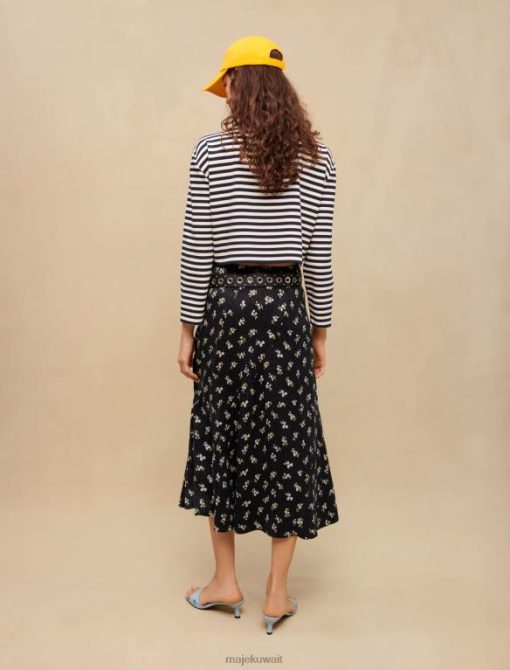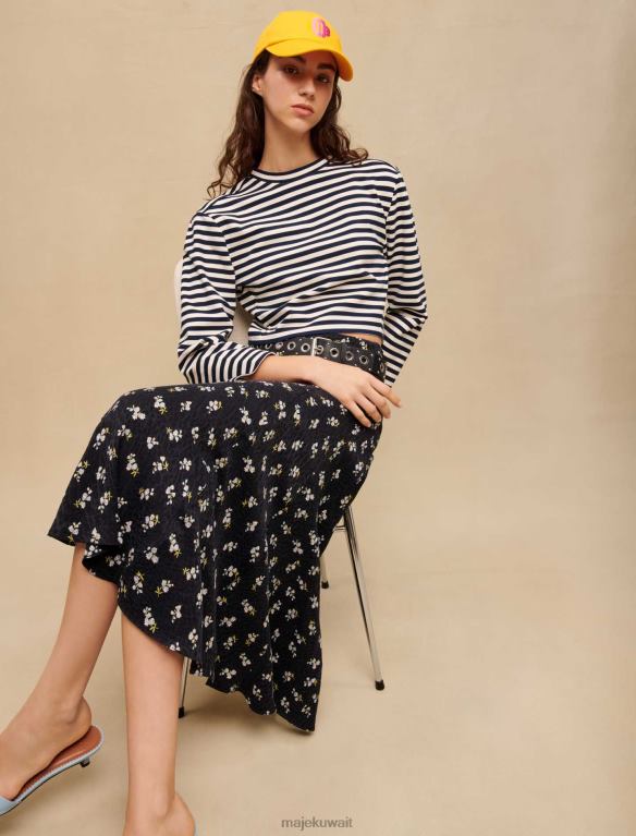 Maje تنورة طويلة غير متكافئة ملابس حرف واحد فقط من البرسيم إكرو/أزرق نحيف JP08B85