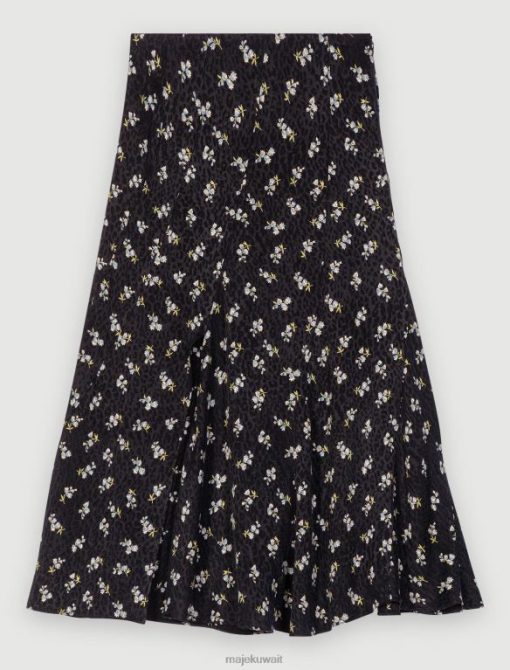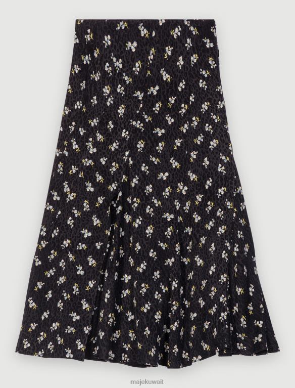 هذه التنورة السوداء الطويلة هي أسلوب يومي رائع. ويتميز بطباعة عصرية تجمع بين طباعة الفهد الأسود والزهور الزرقاء والبيضاء. إنه مثالي لأي مناسبة.