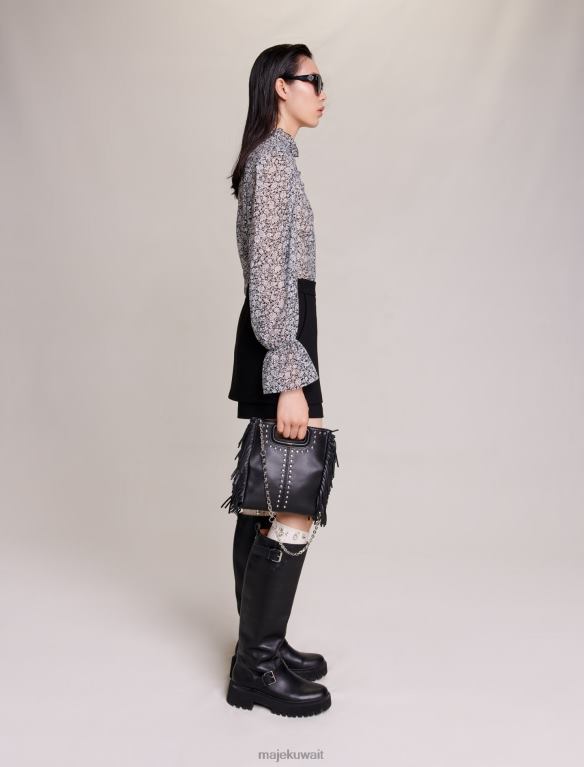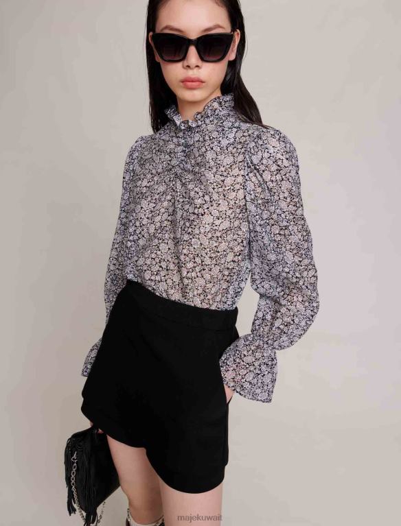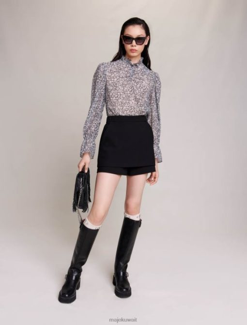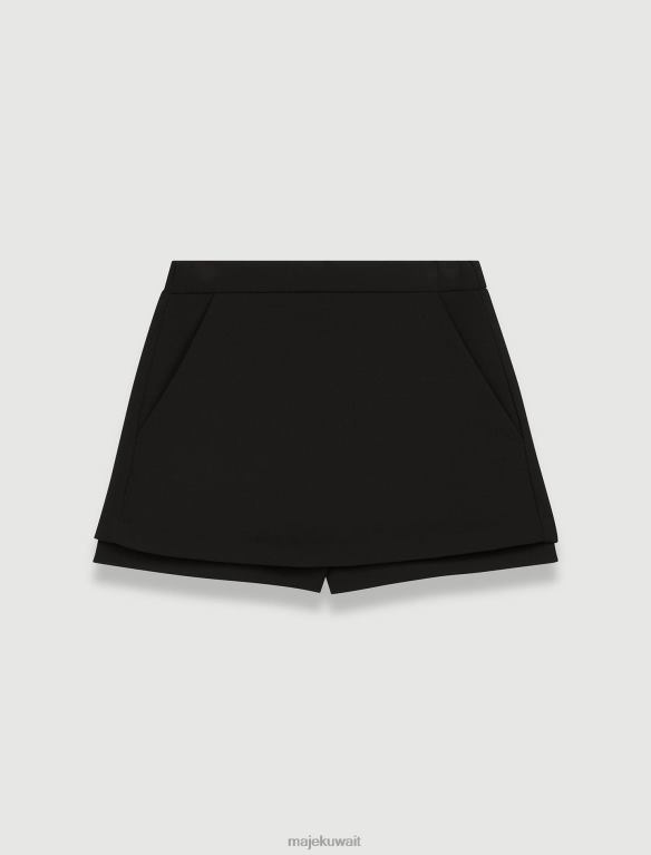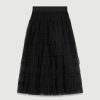 Maje تنورة كريب ذات طبقات ملابس أسود نحيف JP08B124