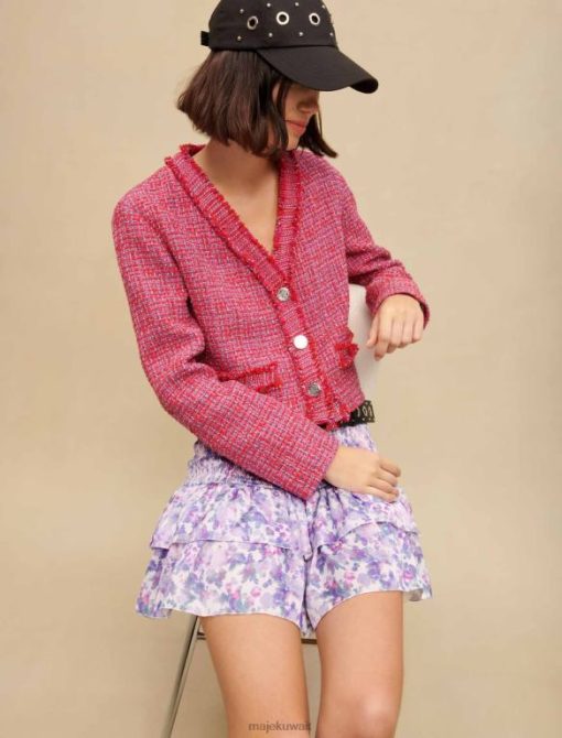 تعتبر هذه الطباعة الزهرية المنعشة والمتألقة بظلال الباستيل أمرًا ضروريًا في مجموعة maje الجديدة. تم تصميم هذه التنورة القصيرة والخفيفة بدقة عند الخصر، ومزينة بكشكشة عائمة.