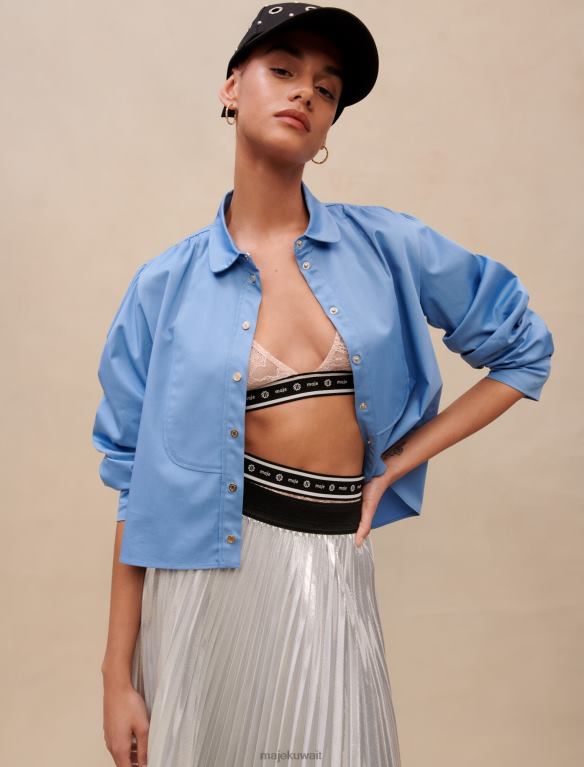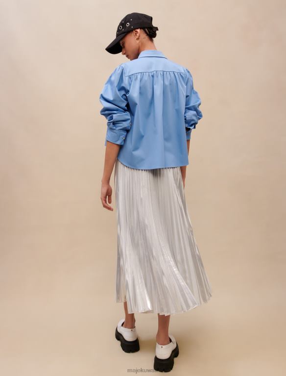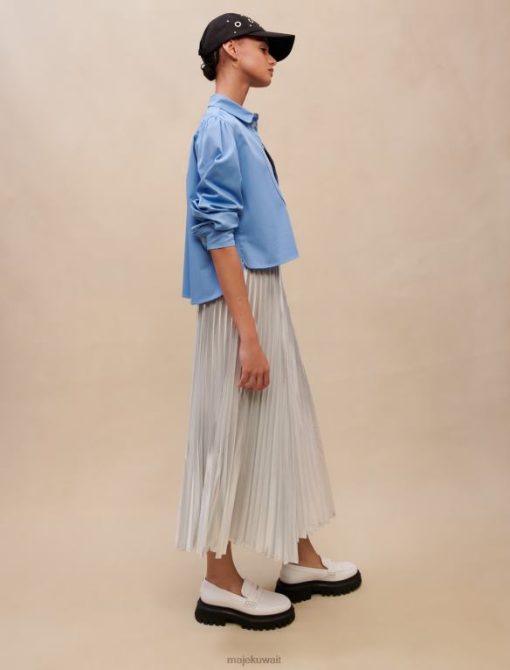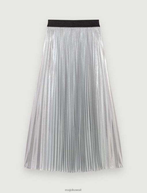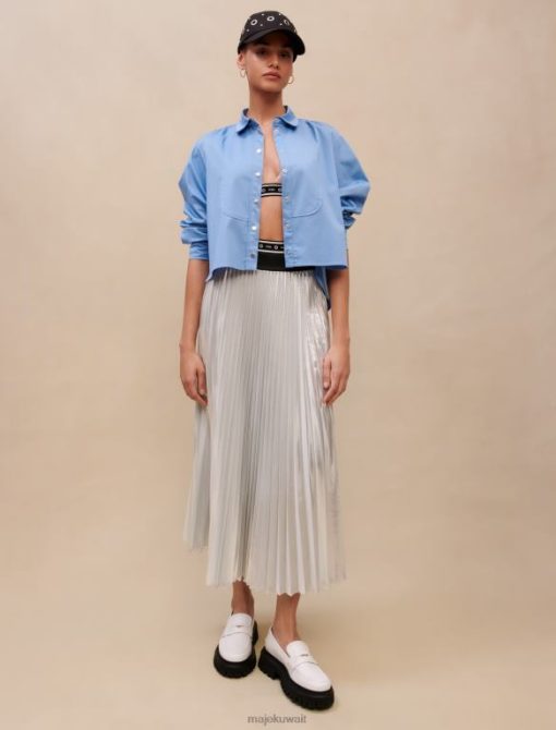 يتم تحديد هذه التنورة المطوية بطول 7/8 بواسطة شريط مطاطي أسود عند الخصر. سيكون هذا النمط الأنثوي للغاية هو نجم أي مظهر، كما يضيف لونه الفضي إلى أصالته.