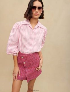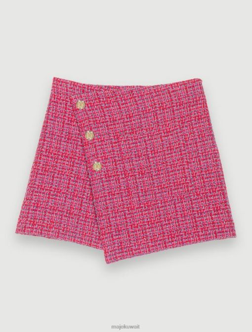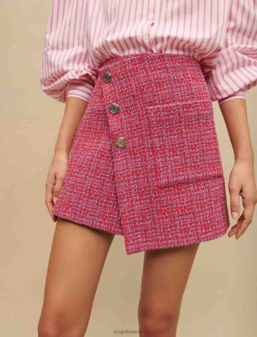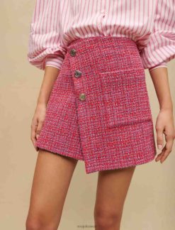 مصنوعة من التويد الإيطالي الرائع، هذه التنورة القصيرة الملفوفة لها غطاء غير متماثل بأزرار في الأمام. هذه لمسة عصرية على تنورة التويد الخالدة. ارتديه مع السترة المطابقة أو مع قميص كبير الحجم للتلاعب بالأحجام.