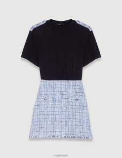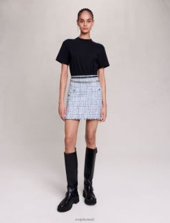 Maje تنورة متماسكة بحروف كبيرة ملابس حرف واحد فقط من البرسيم إكرو/أزرق نحيف JP08B88