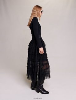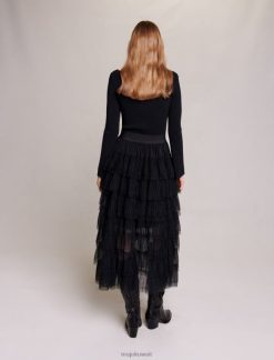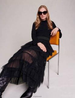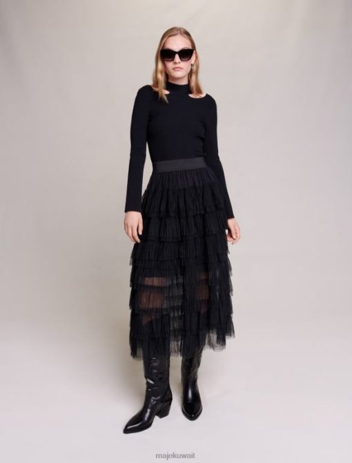 Maje تنورة ميدي تول ملابس أسود نحيف JP08B103
