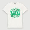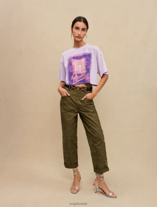 يتميز هذا التيشيرت القصير بأكمام قصيرة بقصة واسعة تشبه الصندوق ويتميّز بطبعة شجرة نخيل.