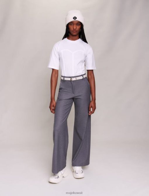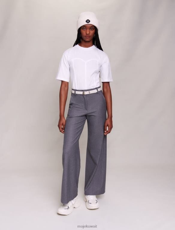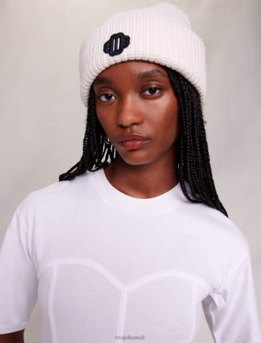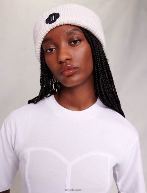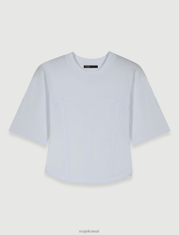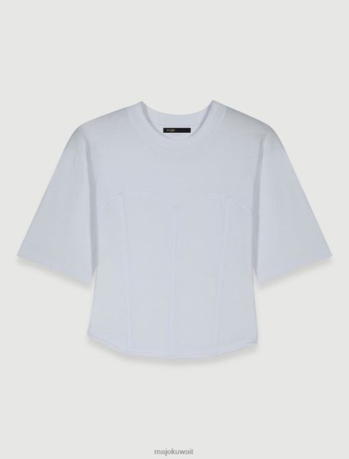 Maje تي شيرت بتأثير مشد ملابس أبيض نحيف JP08B11