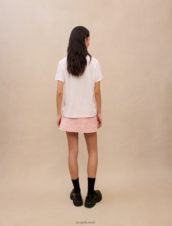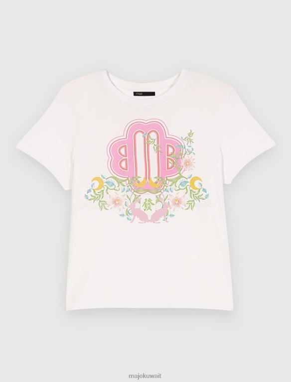 Maje تي شيرت بطبعة البرسيم ملابس بيج فاتح نحيف JP08B447