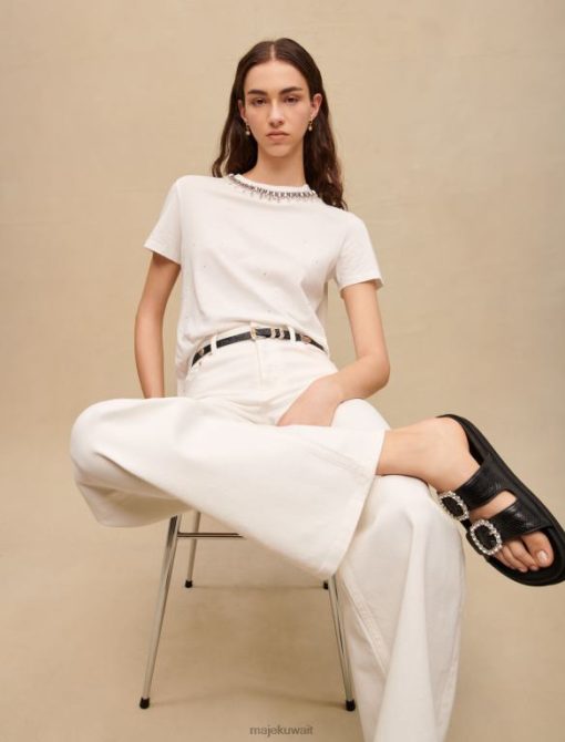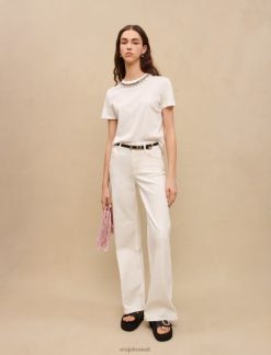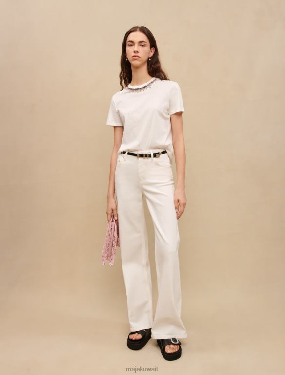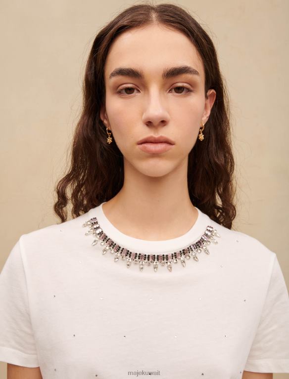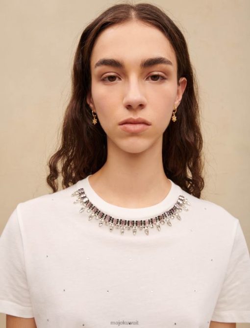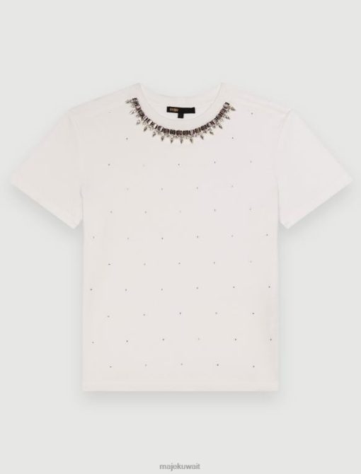 Maje تي شيرت جيرسي مع الماس ملابس أبيض نحيف JP08B144