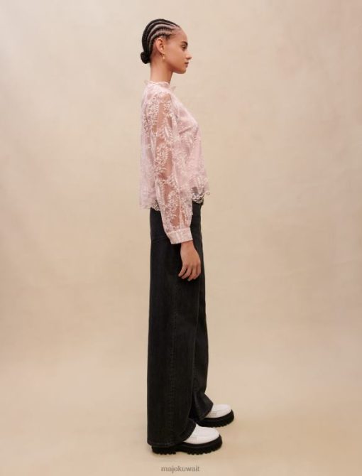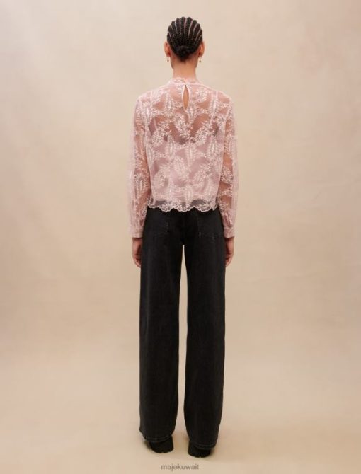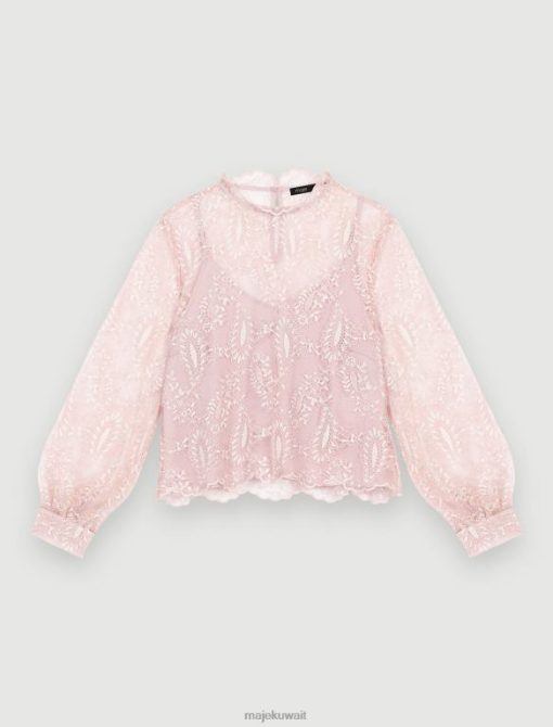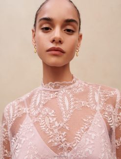 هذا القميص ذو اللون الوردي من الدانتيل ينضح بالأنوثة. يتميز ببطانة وردية اللون قابلة للإزالة ومزينة بجزء علوي مصنوع بالكامل من الدانتيل الوردي الرقيق. وهو ذو أكمام طويلة ورقبة مستديرة.