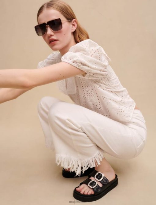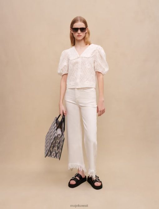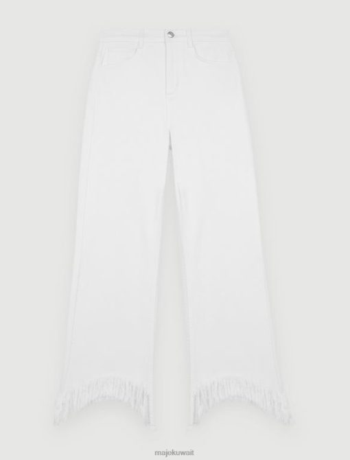 جينز بقصة مستقيمة. قماش الدنيم الباهت. سهل. زر الدنيم في الأمام مع سحاب مخفي. حلقات الحزام عند الخصر. جيوب أمامية وخلفية. مهدب على طول حاشية الساق. جيب التذاكر في الأمام.