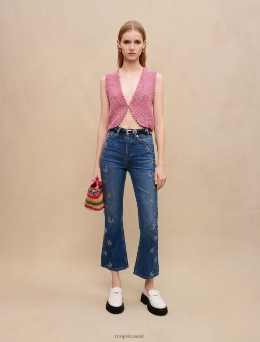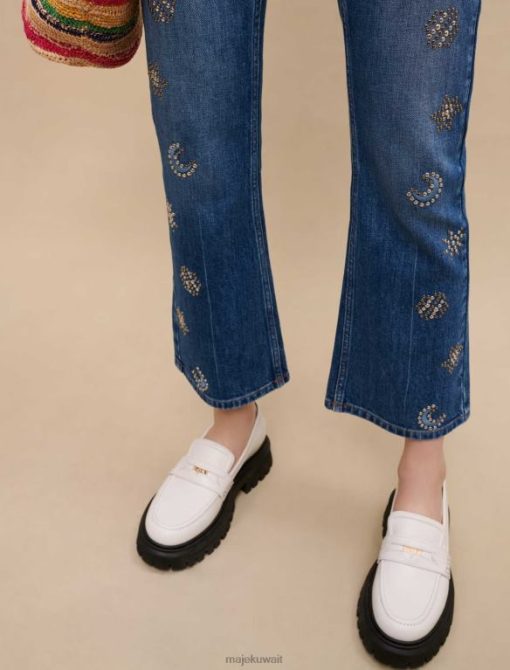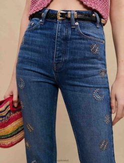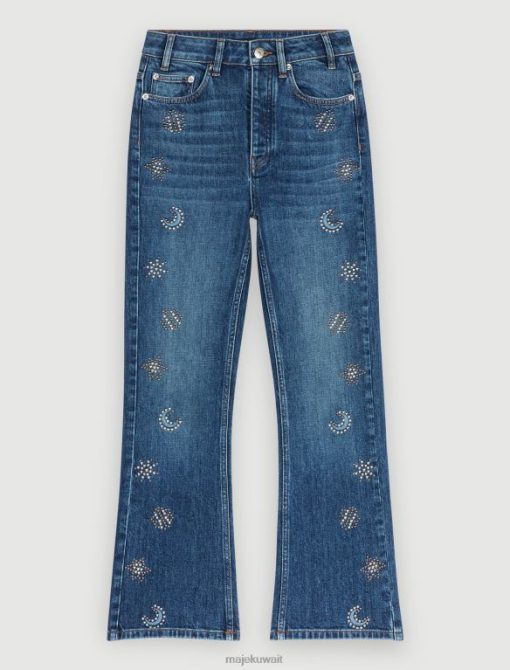 Maje جينز مزين بأقمار كريستال ملابس أزرق نحيف JP08B318
