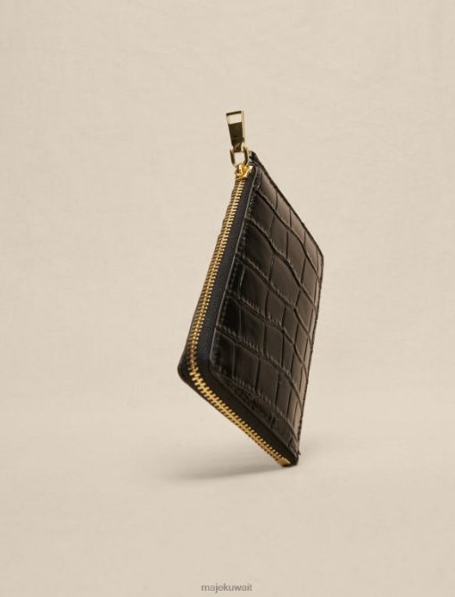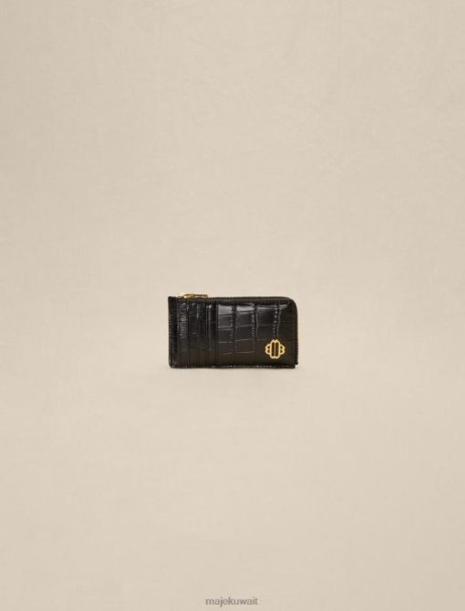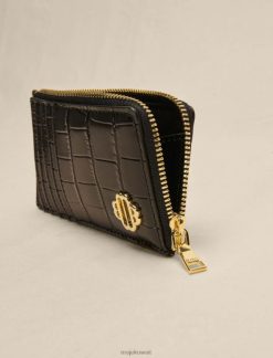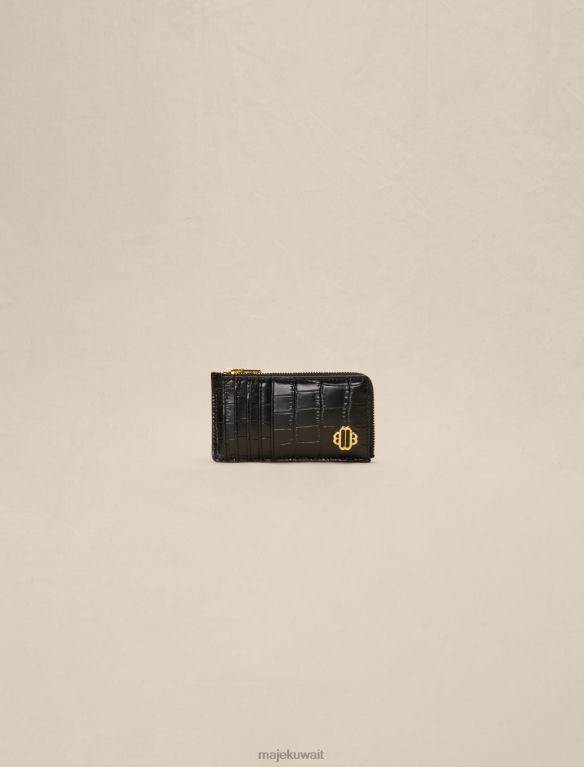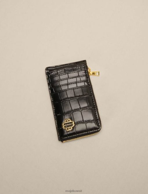 تأكد من سهولة الوصول دائمًا إلى بطاقاتك باستخدام هذه المحفظة الجلدية الصغيرة المنقوشة التي تتميز بفتحات متعددة وسحاب للإغلاق.