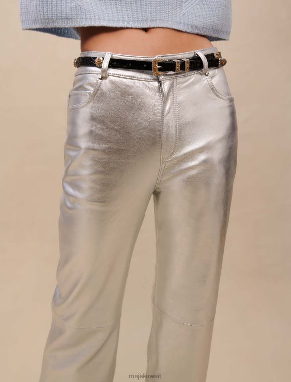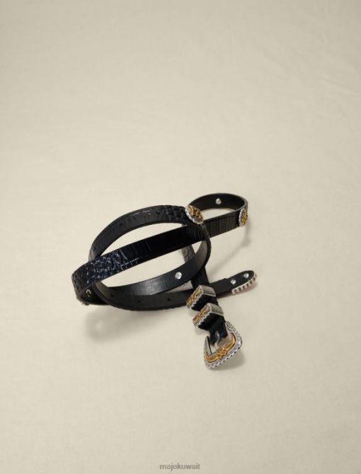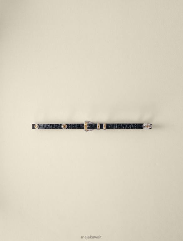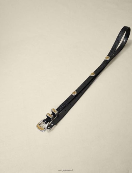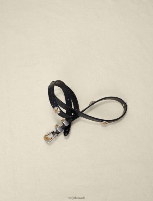 هذا الحزام الجلدي الذي يتميز بزخارف البرسيم وإبزيم معدني متقن على الطراز الغربي يحدد الشكل بشكل أنيق. يمكن ارتداؤه فوق سترة للحصول على مظهر أكثر ملاءمة.
