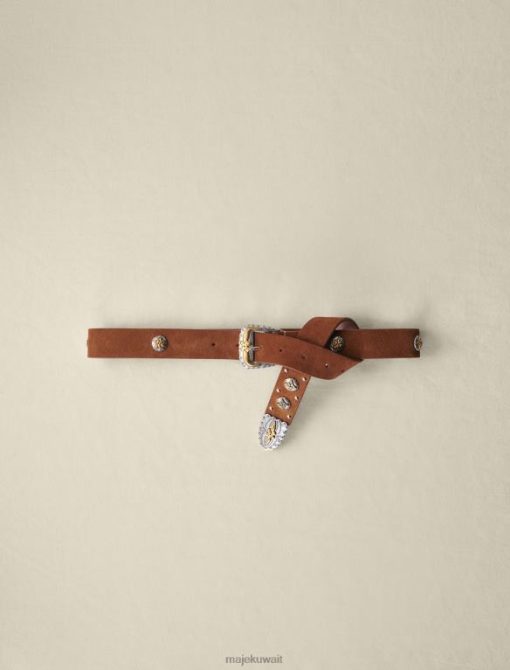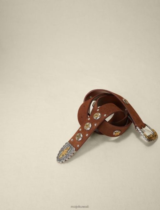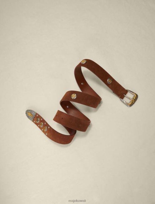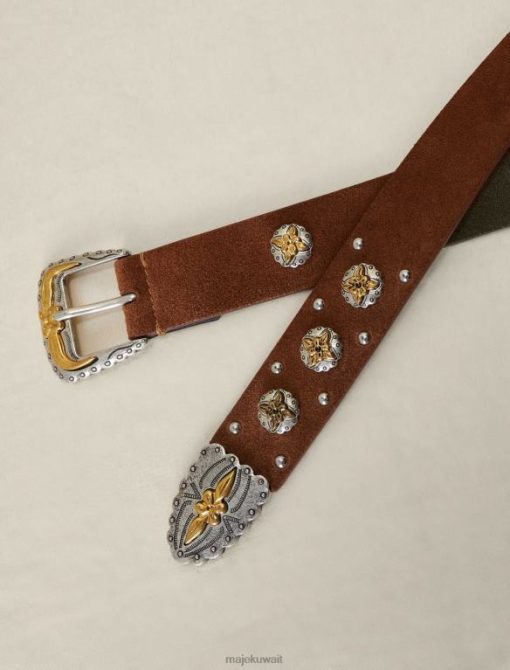 هذا الحزام المصنوع من الجلد السويدي المزود بإبزيم معدني على الطراز الغربي وزخارف البرسيم يحدد الشكل بشكل أنيق. يمكن ارتداؤه فوق سترة للحصول على مظهر أكثر ملاءمة.