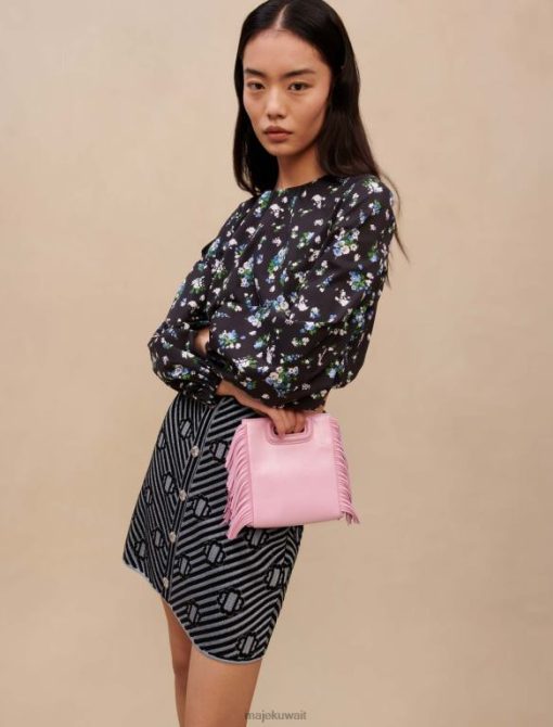 تتميز هذه الحقيبة الصغيرة بتصميم M بجلد متشقق. أهداب، ومقابض مصبوبة، وخياطة مركزية، والشعار المنقوش بالذهب، وتوقيع maje منقوش على المقبض ومنقوش على الخطافات المفاجئة. يمكن ارتداؤها على الكتف، أو حملها باليد باستخدام السلسلة القصيرة أو ارتدائها على الجسم باستخدام حزام الكتف الجلدي القابل للتعديل. ص>