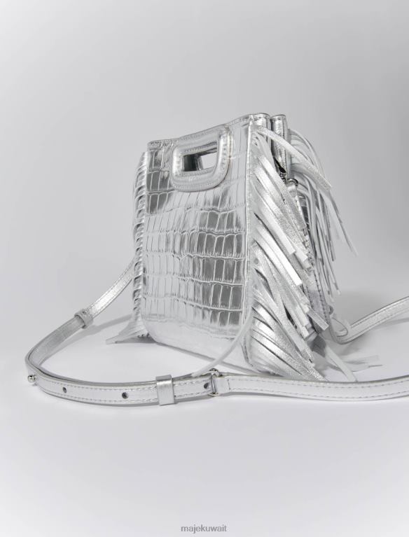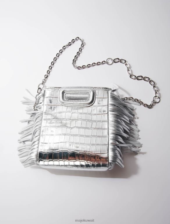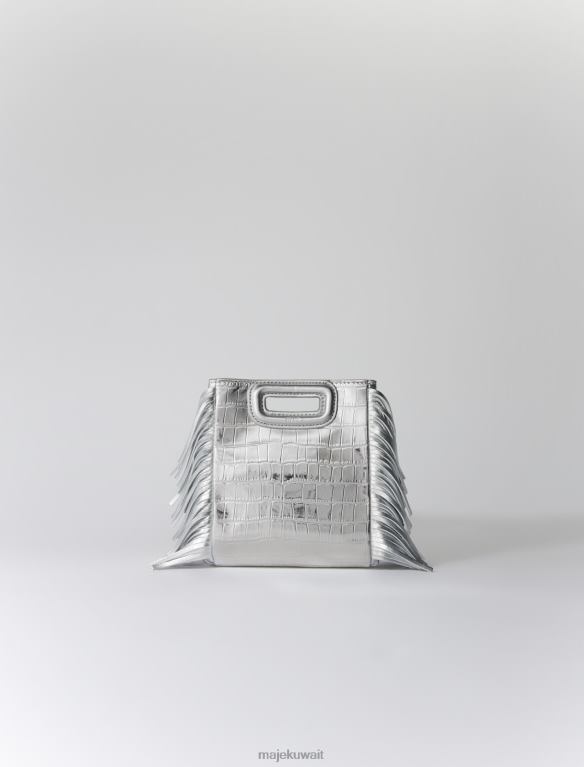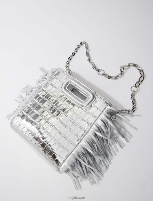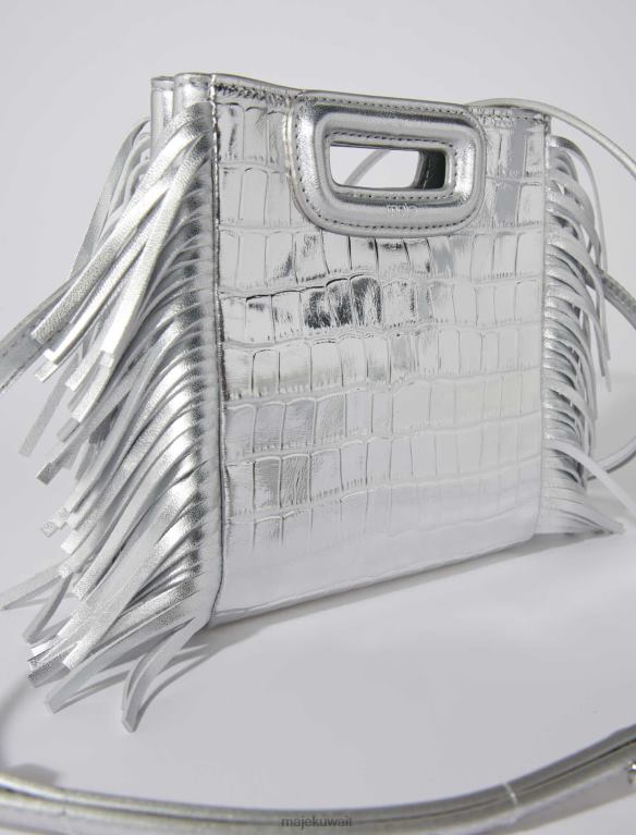 Maje حقيبة صغيرة M بتأثير جلد التمساح ملحق فضة نحيف JP08B450
