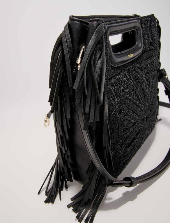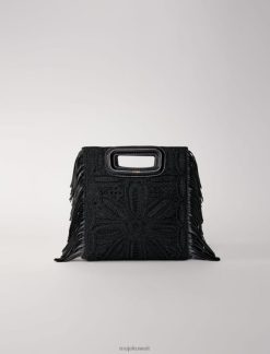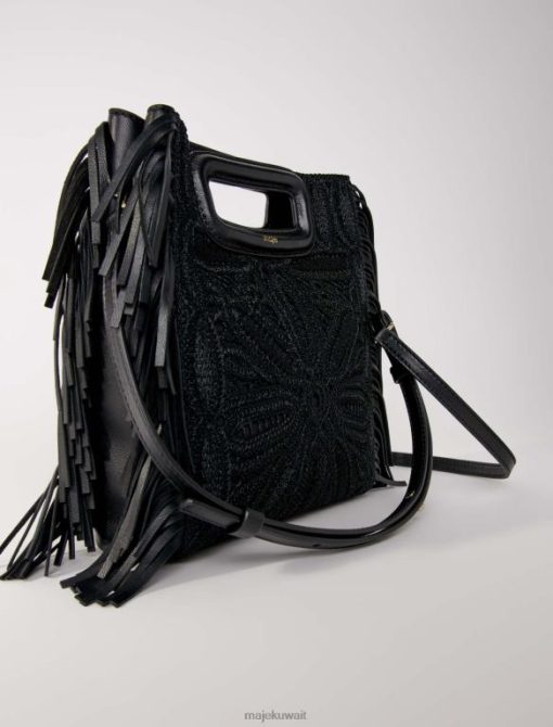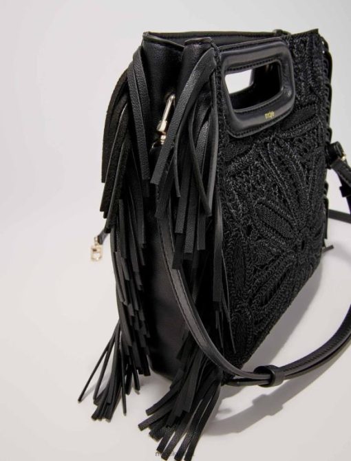 Maje حقيبة م متماسكة بالكروشيه ملحق أسود نحيف JP08B457