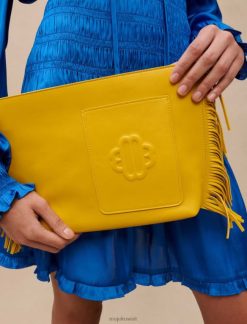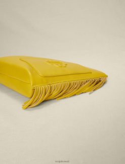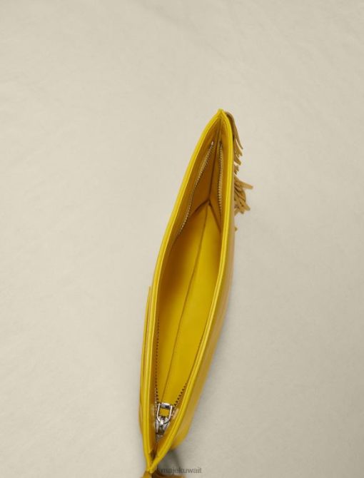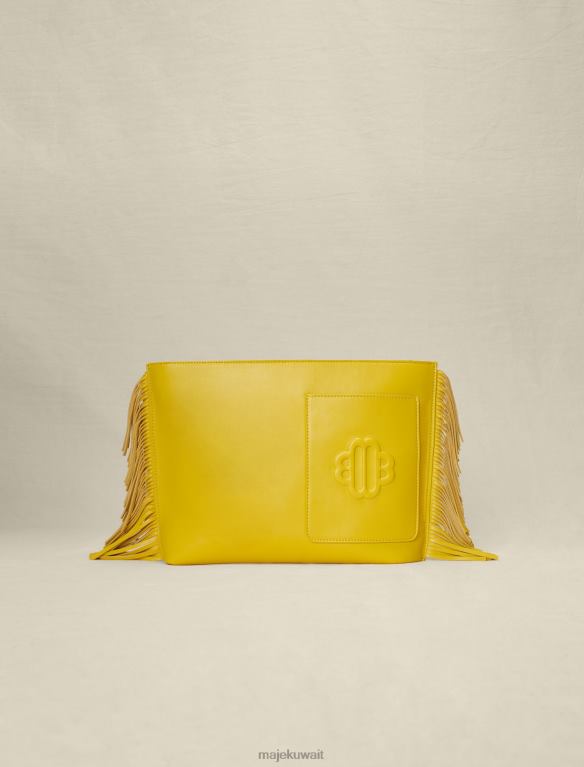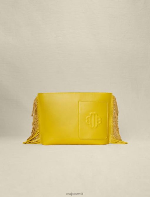 Maje حقيبة يد جلدية مهدب ملحق أصفر نحيف JP08B475