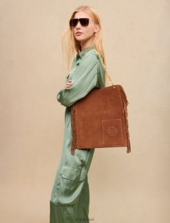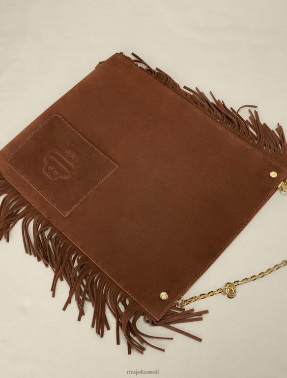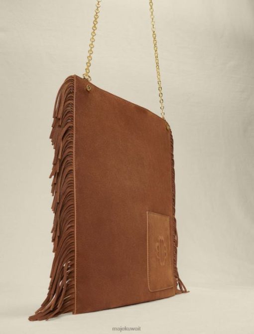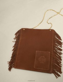حقيبة من جلد الغزال مع مهدبة على الجوانب. سلسلة نحاسية. جيب بنقش البرسيم في الأمام. جيب داخلي كبير للأيباد مقاس 25 × 20 سم. مجمعة. يمكن ارتداؤها على الكتف أو حملها باليد، مثالية أثناء النهار أو في المكتب.